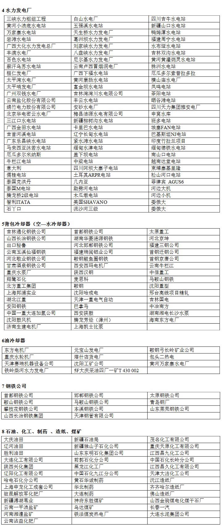 1、哈爾濱電機(jī)廠 2、 杭州發(fā)電設(shè)備廠 3、東方電機(jī)廠 4、北京重型電機(jī)廠 5、天津發(fā)電設(shè)備廠 6、東風(fēng)電機(jī)廠 7、沈陽電機(jī)廠 8、西安西瑪電機(jī)廠 9、南京汽輪電機(jī)廠 10、 昆明電機(jī)廠 11、濟(jì)南生建電機(jī)廠 12、重慶水輪機(jī)廠